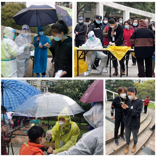 3月19、20日两天天公虽不作美,但是在医生、社区干部、业委会、物业、志愿者的通力合作以及居民的高度配合下,两天均完成了近2500人次的采样。周末两天的志愿者工作收尾时,整个社区接到了需要封闭小区,在21、22日两天再进行2次核酸的通知。就这样她放下线上学习的两个孩子,在安排好居家办公的工作同时,继续冒雨投入到志愿者工作中。全程站立,维持秩序、给医生打下手、扫码……哪个岗位缺人,就到哪个岗位。截至到投稿,小区又接到继续封闭2天进行下一轮核酸的通知,她的志愿者之路还在继续。