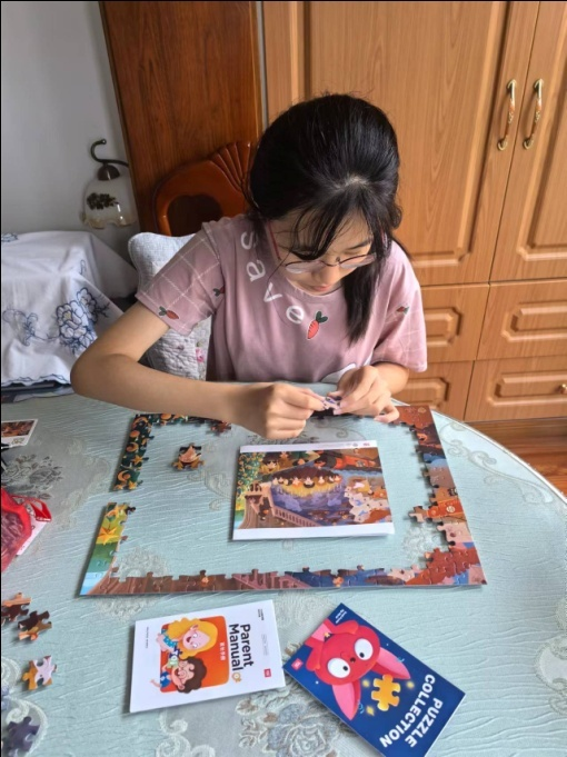 活动以完成中国地图、故宫等主题拼图为核心,旨在增进家长与孩子之间的沟通协作,同时帮助孩子认识祖国的地理形态和疆域范围,了解国家及各省地标性历史建筑文物,培养深厚的爱国主义情怀。家长和孩子共同完成拼图任务后,在拼图上用油画棒签下孩子的个性签名,并拍摄亲子照片进行展示。孩子们手捧着自己完成的拼图,脸上洋溢着满满的成就感。此次“乐在一起 童心六一”亲子趣味拼图活动圆满成功,不仅为教职员工和孩子提供了一个展示才华、增进感情的平台,也为他们留下了一个难忘的六一儿童节回忆。