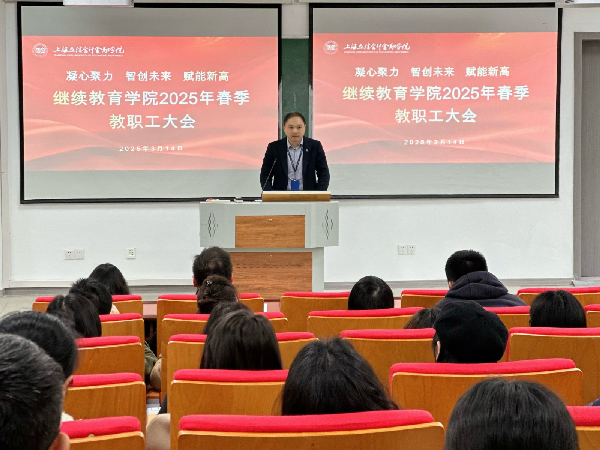 3月14日下午,继续教育学院在中山西路校区召开“凝心聚力 智创未来 赋能新高——2025年春季教职工大会”。学院党政班子成员、全体教职工参加会议。大会由学院党总支书记、院长姚晓东主持。