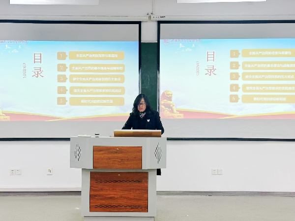副院长张海琼领学了习近平总书记重要文章《健全全面从严治党体系》。张海琼指出,从严治党是新时代党的建设的鲜明特色和重要保障,全体教职工要深入学习领会讲话精神,持续推动全面从严治党向纵深发展,坚定理想信念,严守党的政治纪律和政治规矩,以身作则,率先垂范,共同营造风清气正的校园环境。张海琼还就近期工作进行部署,包括落实制度修订、推动混合式教学实施、协助教学点管理和招生工作,确保学生管理与教学工作的高效开展。