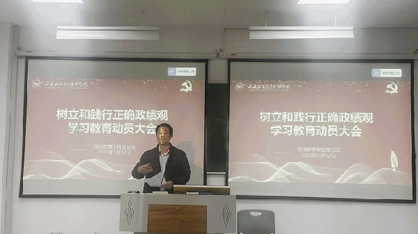 3月12日,继续教育学院在中山西路校区召开树立和践行正确政绩观学习教育动员大会,专题研究部署学院树立和践行正确政绩观学习教育工作。学院党总支书记尹晓春主持会议并讲话,全体党员参会。