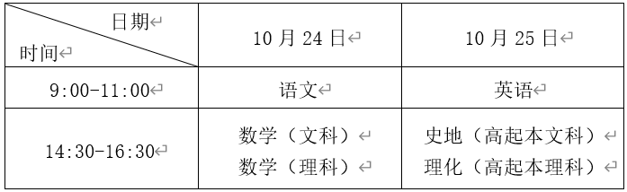 高中起点升本、专科考试时间表: