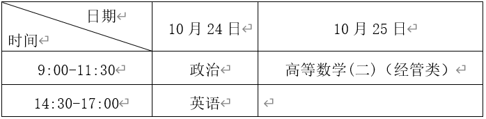 专科起点升本科考试时间表:
