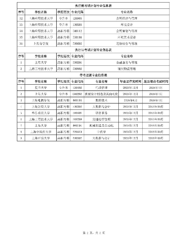 2026年我市高等教育自学考试有9个专业处于停考过渡期,其市级统考课程使用的教材考纲保持不变,全国统考课程教材考纲按公布的书目表执行。其思政课调整按新规定执行,具体详见:关于调整上海市高等教育自学考试思想政治理论课课程设置的通知。