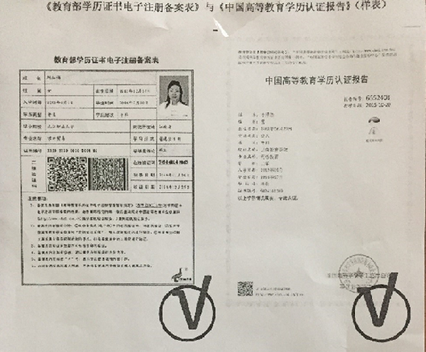 《教育部学历证书电子注册备案表》和《中国高等教育学历认证报告》样表